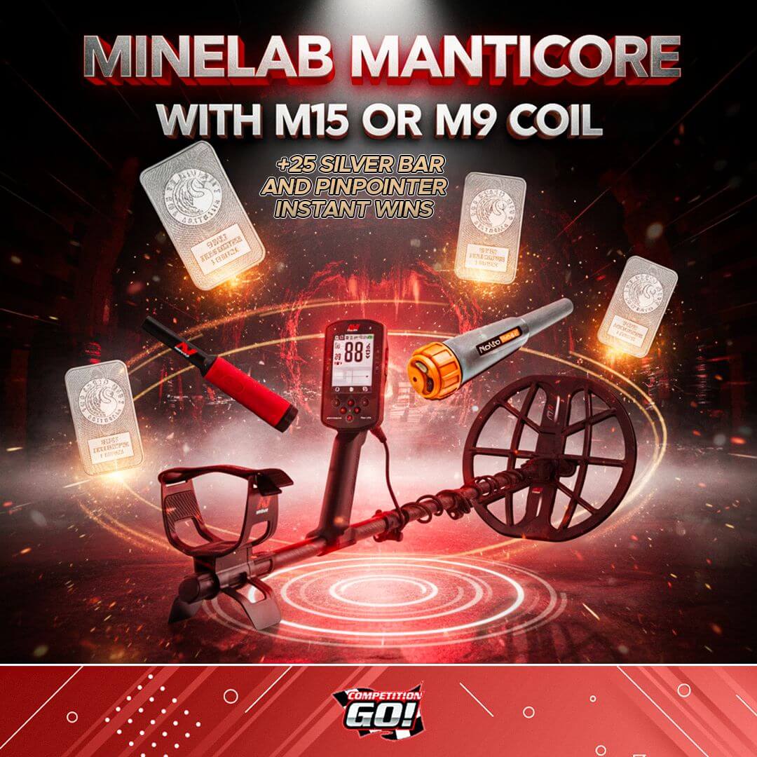 MINELAB MANTICORE WITH M15 OR M9 COIL + 25 SILVER BARS & PINTPOINTER INSTANT WINSwinner