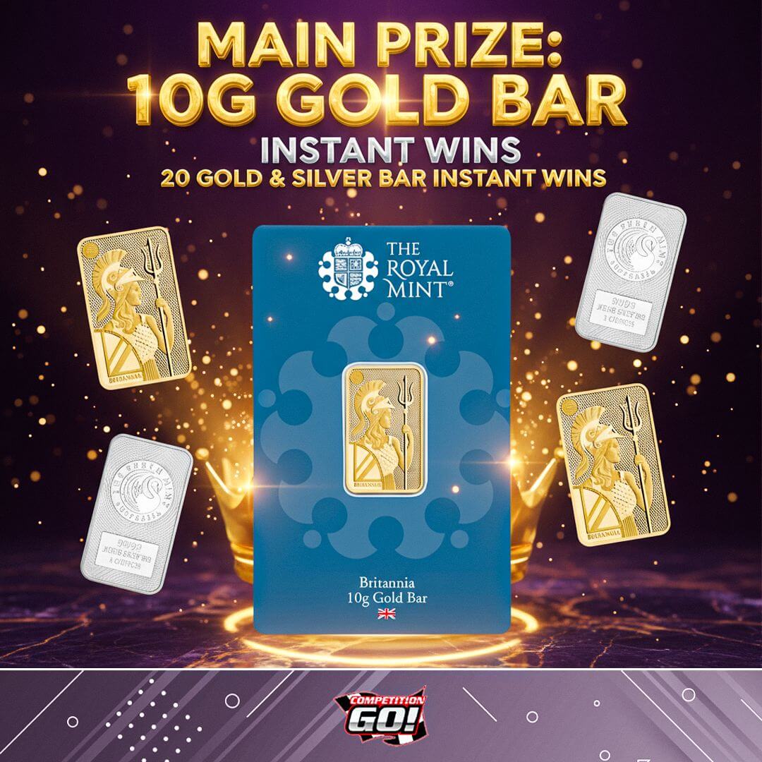 10G GOLD BRITANNIA MINTED BAR + 20 GOLD AND SILVER BAR INSTANT WINS!winner